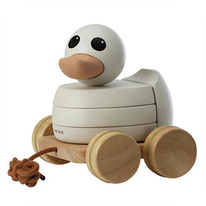 Hevea Kawan Wood Stacker + Pull Toy (Rubberwood) is an adorable, natural, non-toxic toy made entirely of pure natural rubber and up-cycled rubber wood making your child’s footprint a little greener. The plastic-free Kawan stacker pull toy is meant to inspire and challenge your child to play in various ways. Your baby can develop and train hand-eye coordination and improve their motor skills, while your toddler can take the wooden Kawan duckie (means friend in Malay) for a walk with the attached string. No BPA, phthalates, plastic or any other baddies.