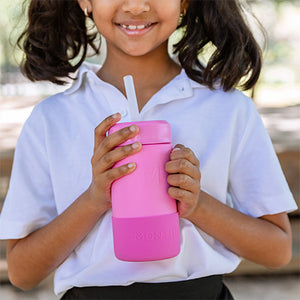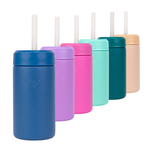 • The MontiiCo Fusion Smoothie Cup (350ml) with a silicone straw is the ideal smoothie sidekick to take smoothies, bubble tea, fresh juice or ice coffee on the go. It's the perfect size for little hands to hold, and a zero-waste alternative to single-use plastic cups.  And there's more...it's designed to be multi-purpose. Purchase a matching sipper lid and convert into a sipper cup - or mix and match the stylish range of MontiCo Insulated Bags