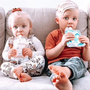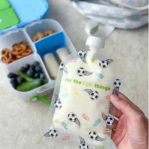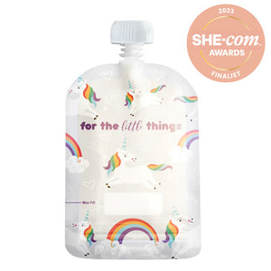 Sinchies 150ml Reusable Food Pouches (5 Pack) and are a clever way to serve home-made baby food or bulk-bought yogurt; a great way to save money, serve healthy food to bubs, and reduce waste. Suitable for (but not limited to) - baby foods, smoothies, fruit crushers, yoghurt, jelly, custard and more.
