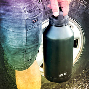 • The Oasis Insulated S/Steel Titan Bottle (1.9L) is a super sized, tough, durable insulated bottle that keeps drinks cold up to 24 hours, hot up to 12 hours. Pack plenty of hydration a days work, kids sports, or a family event. We've even heard of families keeping hot dogs warm and serving after the kids winter sports.  It's an environmentally conscious alternative to single use plastic bottles and disposable takeaway packaging.