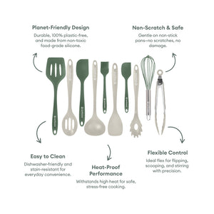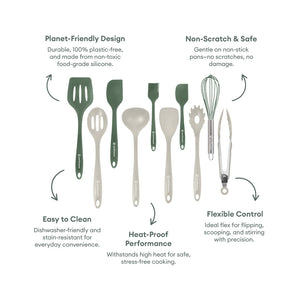Designed with kindness in mind for your cookware, this sleek set of silicone utensils are flexible, heat-proof, and completely plastic-free. Whether you’re flipping pancakes or stirring sauces, they give you full control without leaving a scratch.