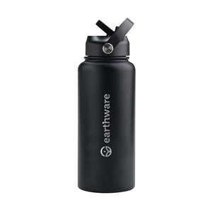 Earth Bottle Premium Insulated Water Bottle with 2 x Caps - Black (1L)