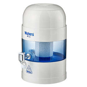 The Waters Co BIO 400 (5.25L) White Bench Top Water Filter turns ordinary tap water into great tasting, fresh and live mineral water that's alkalised, energised, magnetised and ionised - as nature intended. It filters out up to 99% of sediment, rust, bacteria, cysts, chlorine, chemicals, heavy metals, fluoride and unpleasant odours*