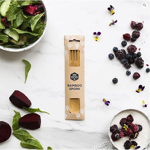 • The Ever Eco Bamboo Spork is reusable bamboo utensil (one side is a fork and one side is a spoon) handy for your lunch bag, picnics and travel. Refuse single-use and BYO while out and about.