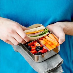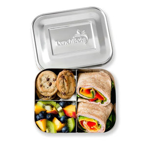 Lunchbots Medium Trio with three compartments is custom designed to fit a 1/2 sandwich and 2 small sides. Lunchbots' best-selling stainless steel bento box for young kids and small appetites makes it easy for mums and dads to pack a variety of foods. And made from food grade stainless steel it's strong, lightweight, and won't leach odours.