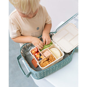 Montiico Bento Five fits in a range of insulated eco-friendy lunch bags including the Sachi Insulated Tote, Packit Freezable Lunch Box, Packit Freezable Lunch Bag, MontiiCo Insulated Bag and the Fridge to Go Medium.