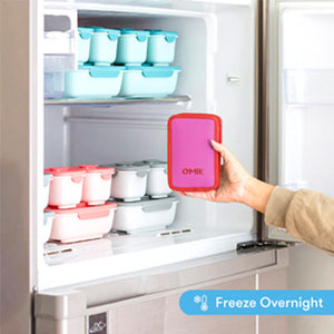 The Omie Chill Freezable Pouch is a great way to keep food pouches cool on the go. Place your Omie Chill pouch in the freezer for at least 4 hours, then insert a food pouch (fits most 4oz food pouches). The Omie Chill can also be used as an ice pack for your Omie Tote.