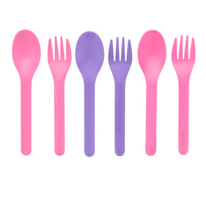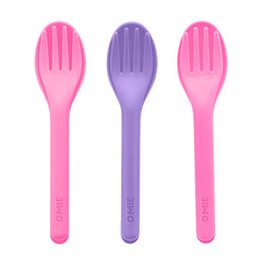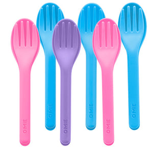 Omie Cutlery Set (6pc) is a convenient, lightweight, travel fork and spoon set from the makers of OmieBox Bento Box. Bright, colorful and fun fork and spoon utensil set is ideal for kids lunches, camping, travel, or whenever you’re on the go.